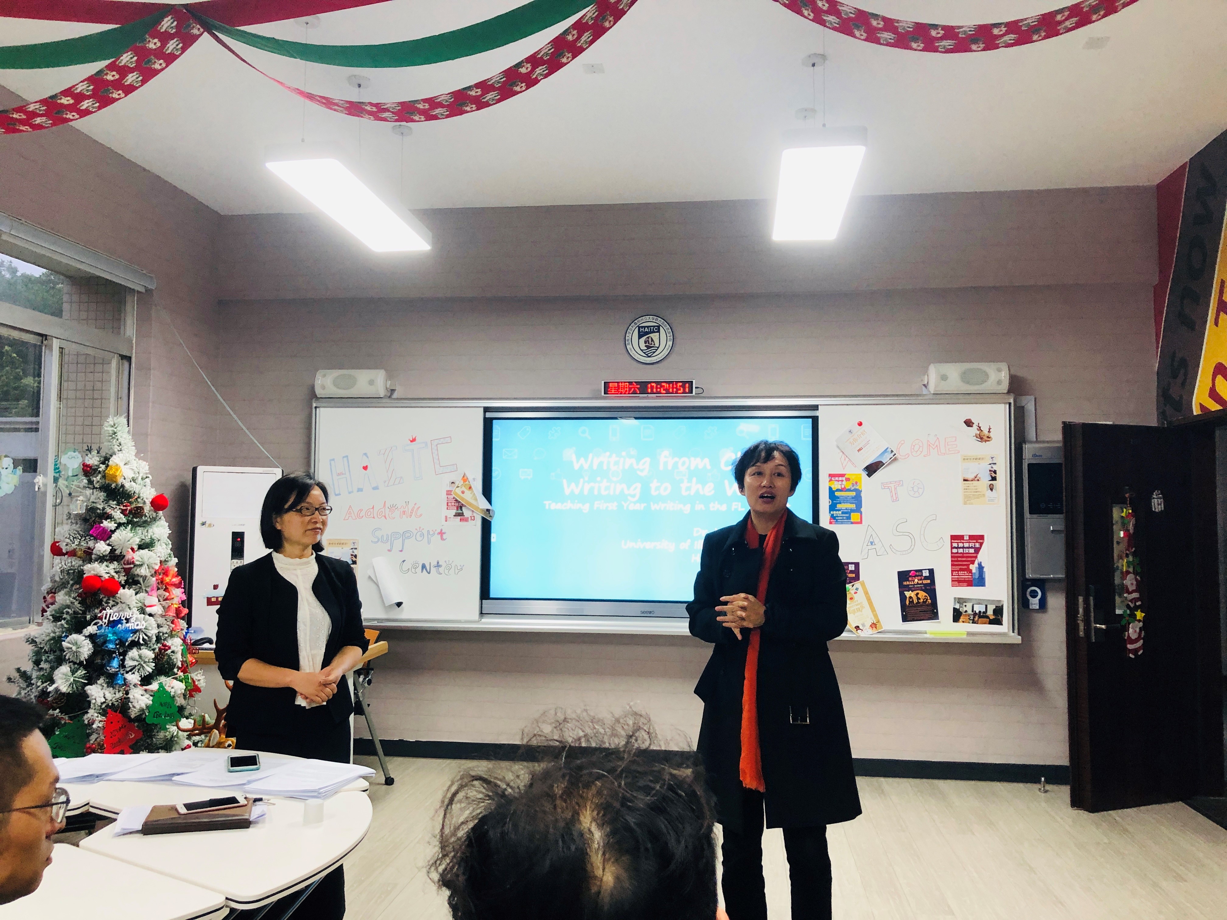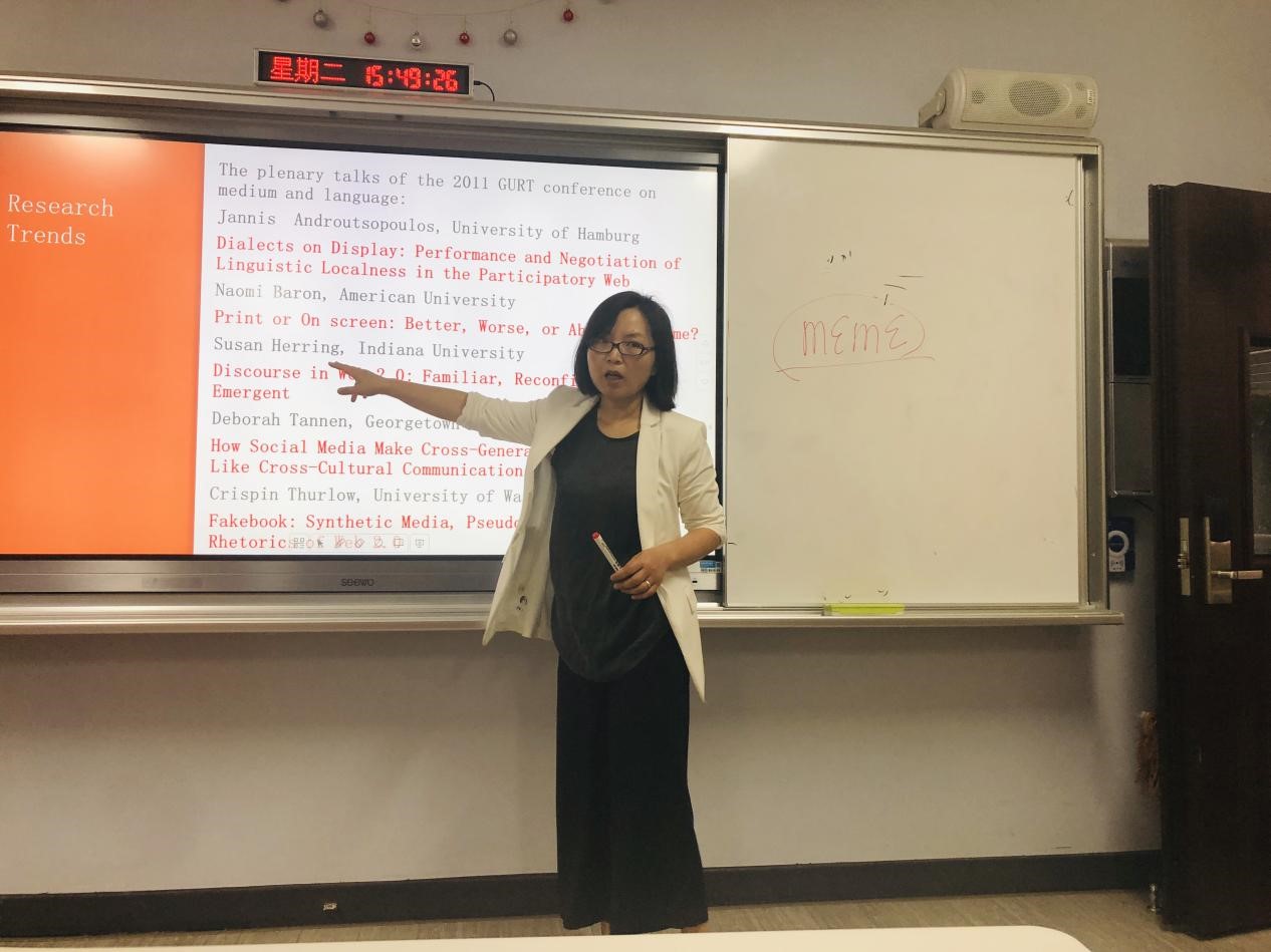受suncitygroup太阳集团国际交流与合作处、suncitygroup太阳集团旅游公司、国际旅游公司邀请,伊利诺伊大学向雪花副教授于12月22日莅临公司,在田家炳楼202室为旅游公司外国语言学及应用语言学、外国语公司外国语言文学硕士研究生讲授《应用语言学国外前沿进展》课程。该课程为期8天(2018年12月22日-29日),旅游公司、国际旅游公司部分老师也到场听课。