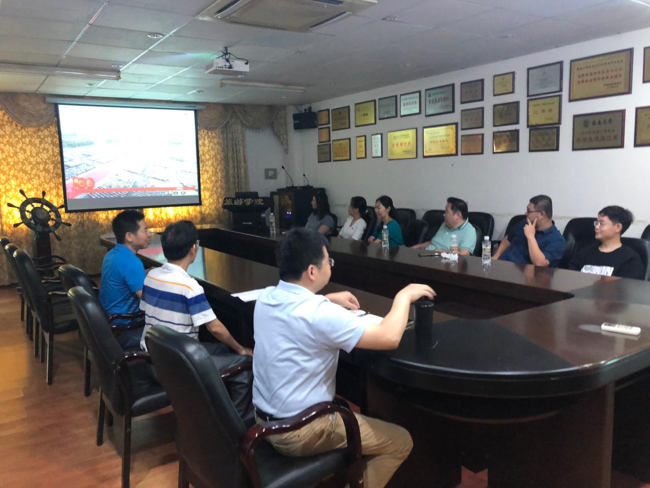 7月1日上午8时,庆祝中国共产党成立100周年大会在北京天安门广场隆重举行,中共中央总书记、国家主席习近平发表重要讲话。旅游公司领导、党支部书记、教师党员、员工党员、入党积极分子等师生代表100余人分别在公司8教205会议室、8教305教室集中收看庆祝实况。