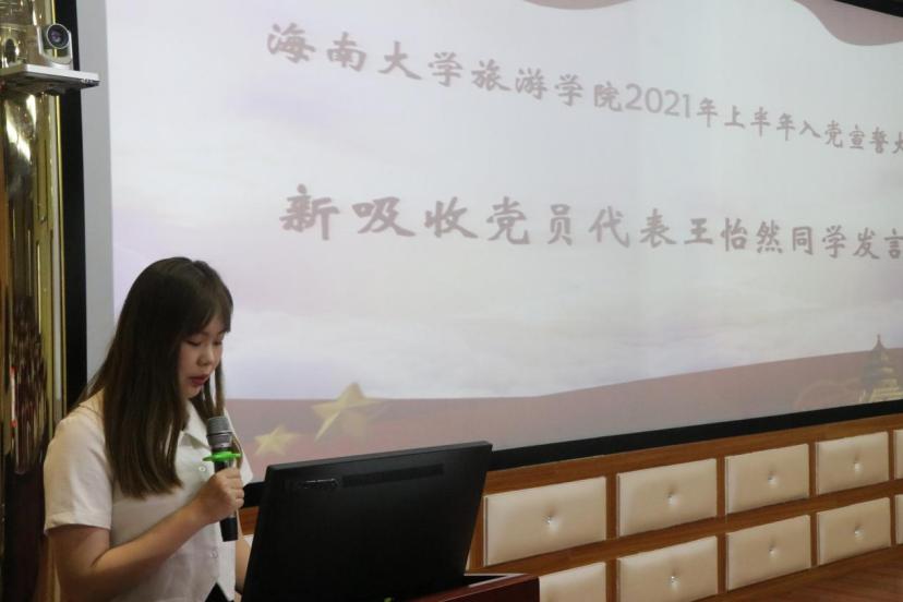 党员王珂同学代表老党员在宣誓仪式上发言,他寄语新党员不仅要在组织上入党而且更要做到在思想上入党,坚定理想信念,在学习、工作和生活各个方面处处带头发挥先锋模范作用,尽快将自己锻炼成为合格的共产党员。新党员王怡然同学代表新党员感谢党组织的悉心培养,并分享了自己在追求入党过程中的心得体会,表示新党员要在党组织的指导下,严格要求自己,加强学习和锻炼,早日把自己培养锻炼成为一名合格的共产党员,今后为党和国家的事业发挥积极作用。