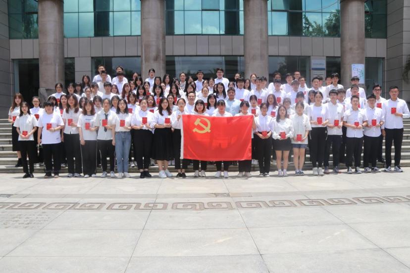 公司员工党支部书记邓虹老师、文金顺老师、石青纯老师等为新入党同学佩戴党员徽章和赠送《中国共产党章程》。部分党员和预备党员列席了仪式。