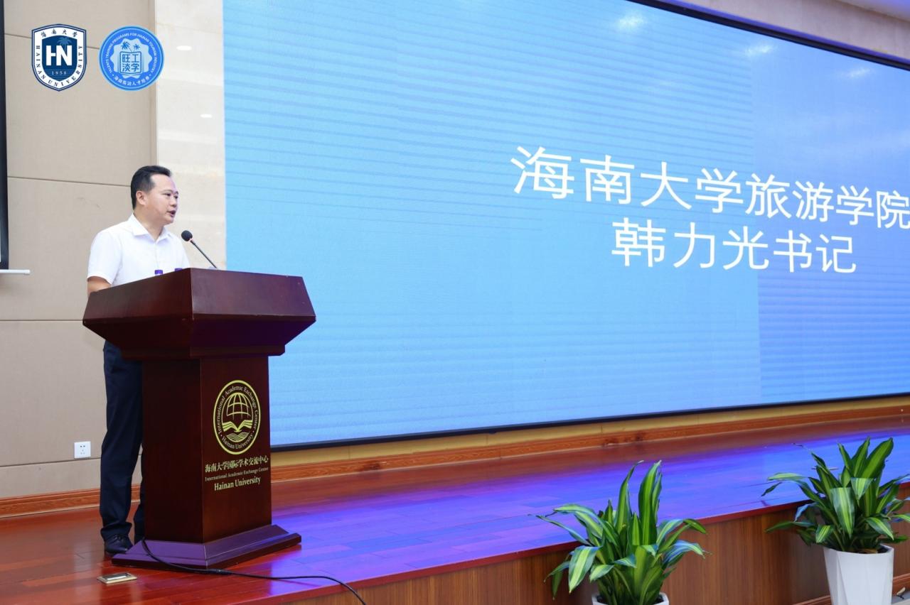 在领导致辞环节,海南省旅游和文化广电体育厅人才教育处李恩处长首先致辞,他对首届毕业生表达了祝贺与祝福,回顾了“旺工淡学”项目从创办到目前的发展过程和持续创新的亮点,介绍了自2019年7月启动以来,累计有15811名旅游业从业人员被录取参加项目学习。生源从最开始的酒店业拓展到2020年的旅游景区、旅行社和旅游餐饮,今年又拓展到了免税购物、旅游商品与装备、高尔夫、乡村旅游等涉旅行业。他表示,“旺工淡学”旅游业人才培养模式在2020年4月被海南省委深改办列为海南自由贸易港首批制度创新案例对外发布。同时,该项目已得到国家发改委和商务部的认可,并向国办、中办报送推荐,在全国复制推广,尤其是2021年4月份项目作为全省六个优秀案例之一,向中央组织部举办的全国自贸区厅局级领导干部“推进自由贸易试验区建设”培训班学员进行展示和汇报,获得中央组织部、省委组织部、省委深改办和参训学员的一致好评。与此同时,项目得到了沈晓明书记的亲笔批示,获得了2021年度海南省政府创新奖三等奖,在旅游人才发展和职业教育改革创新方面,为全国提供了海南经验。