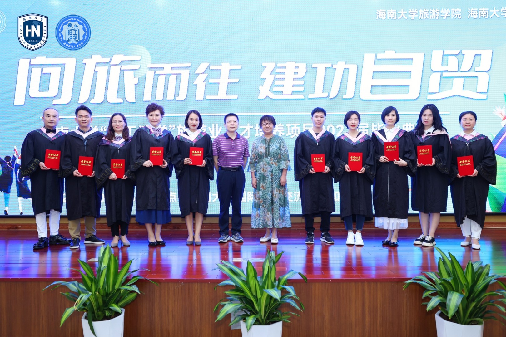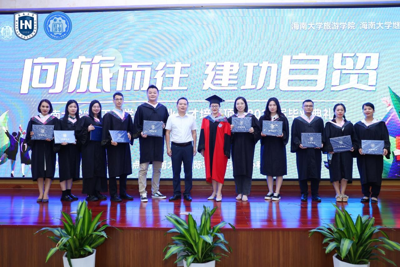 在欢乐的乐曲声中,suncitygroup太阳集团旅游公司和继续教育公司的院级领导先后为2022届毕业班的总经理班、海口班、三亚班的毕业生代表颁发了毕业证书。