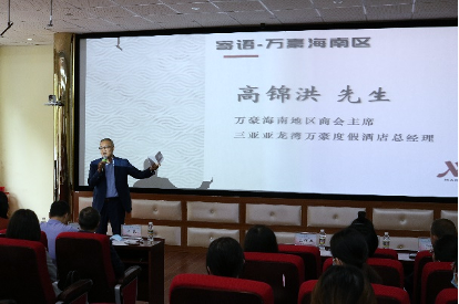 招聘会第一项议程为管培生项目启动仪式,由旅游公司谢祥项副经理、海口万海酒店人力资源经理王泽美女士主持了本环节。首先由管培生项目合作双方致辞。suncitygroup太阳集团旅游公司郭强经理讲述了旅游公司的历史及办学规模,并对与万豪国际集团之间的友好合作表示衷心感谢,同时也希望未来双方能在挖掘和培养人才上有更深的合作。万豪海南区商会主席及三亚亚龙湾万豪度假酒店总经理高锦洪先生也向大家讲述了万豪品牌的起源和发展,在谈到海南区万豪酒店的蓬勃发展时,他感慨道,每位酒店人未来的成长与蜕变,都将推动酒店业的进步。高总强调,少年强,则国强,他坚信万豪将搭建平台,提供机会,希望同学们能够真正做到“海纳百川,大道致远”,成就自己的璀璨人生。