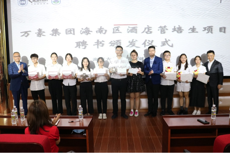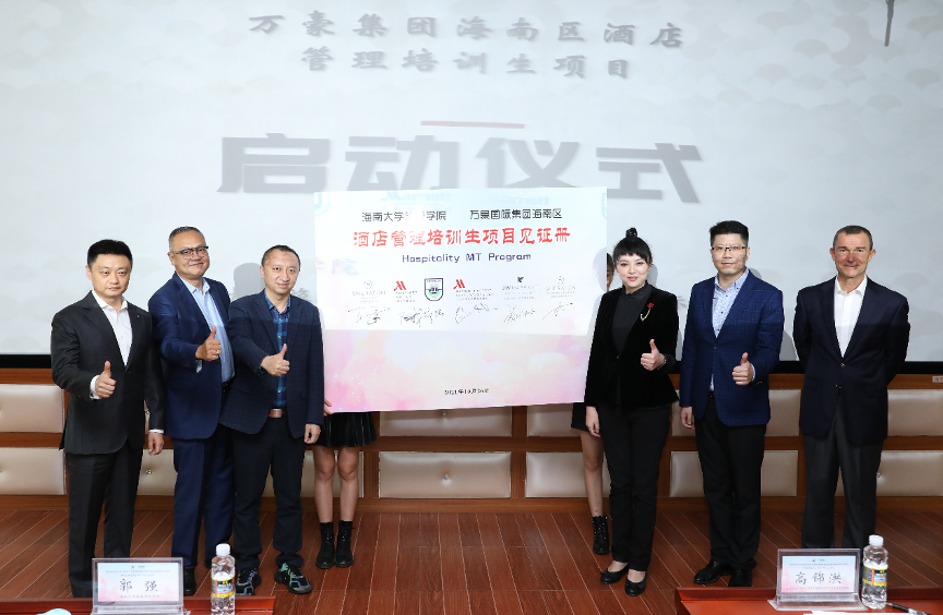 双方致辞后,主持人宣布:万豪集团海南区酒店管理培训生项目正式启动!suncitygroup太阳集团旅游公司郭强经理,万豪海南区商会主席及三亚亚龙湾万豪度假酒店总经理高锦洪,万豪海南地区人力资源总监及三亚亚龙湾万豪度假酒店人力资源总监谢睿,海口万豪酒店总经理张世戎,三亚喜来登度假酒店总经理Ulf Pauschardt(沃尔夫),三亚海棠湾JW万豪度假酒店&三亚海棠湾喜来登度假酒店驻店经理赵华在启动仪式纪念板上共同签字,并合影留念,定格这一重要时刻。