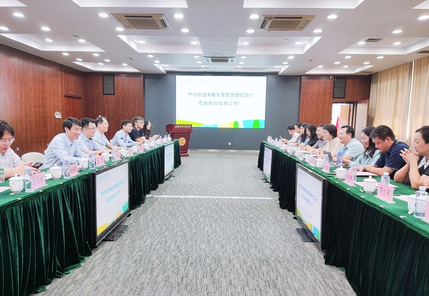 在交流座谈会上,上海对外经贸大学会展与旅游公司经理王春雷对公司到访团队表示热烈欢迎,同时介绍了会展与旅游公司建设发展情况。公司党委书记韩力光介绍了公司党建工作、团队建设、人才培养、团队力量等基本情况,他表示,上海对外经贸大学会展与旅游公司有许多先进特色经验值得学习借鉴,希望未来公司之间进一步加强交流合作,促进共同发展。
