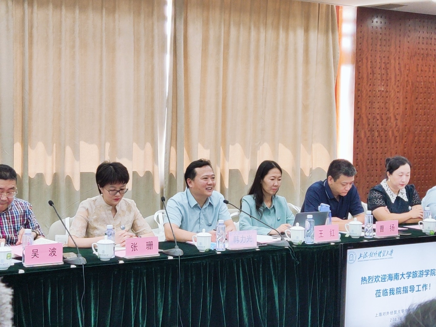 2021年7月6日上午,在公司党委书记韩力光的带领下,公司教师12人前往上海对外经贸大学会展与旅游公司对联合国世界旅游组织专业认证工作进行学习与交流。上海对外经贸大学会展与旅游公司经理王春雷、党委书记谈华以及公司各系部、各部门负责人热情的接待了公司一行。