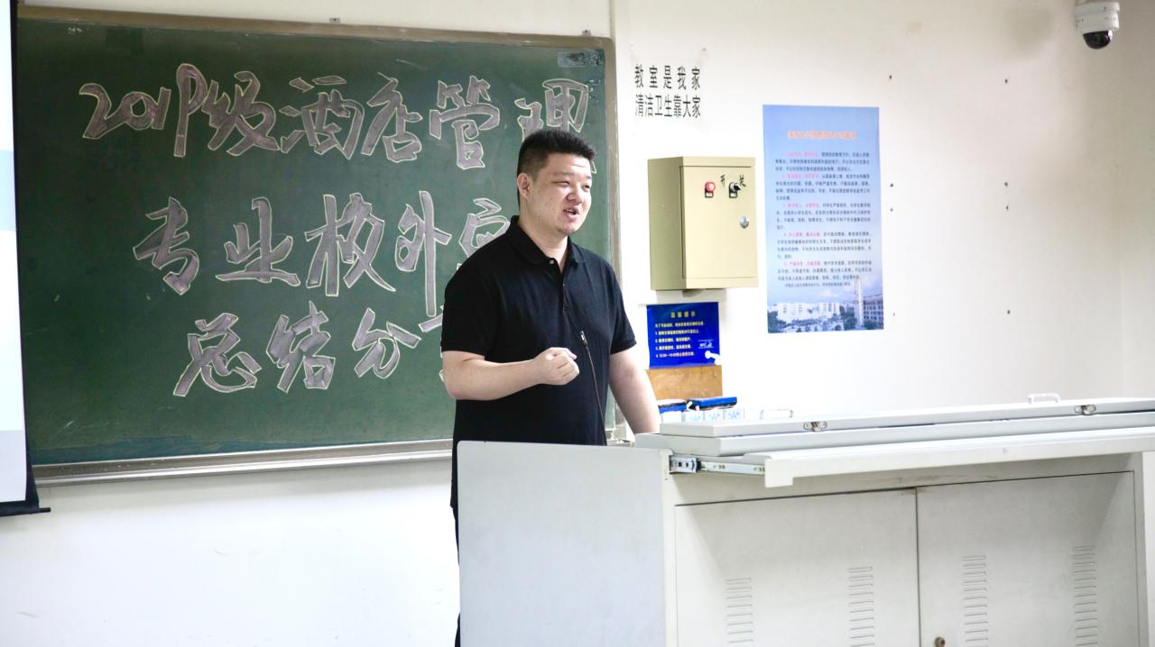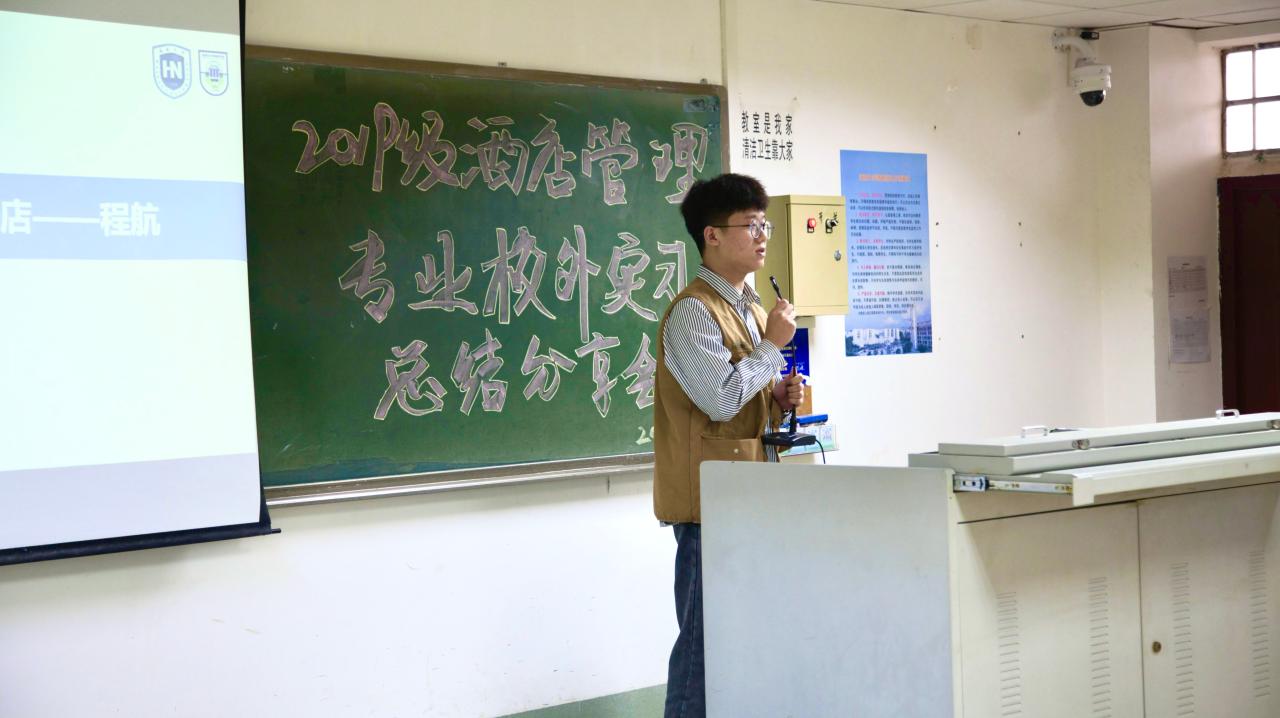 老师总结结束后,由马晋圆同学对此次2019级酒店管理专业的实习情况进行汇报。马晋圆同学依托前期问卷调查数据,从同学们对本次实习的满意度、对实习酒店管理水平的反馈、实习期间心理状态、未来的职业规划等多个方面进行了详细的分析和汇报,并总结传达了同学们对本次专业实习的意见和建议。通过本次实习,同学们都发现了自己的不足和理论联系实际的欠缺,未来会继续深入学习,确立自己的职业规划目标,在今后的实习生活中不断提升自我,达到新的高度。