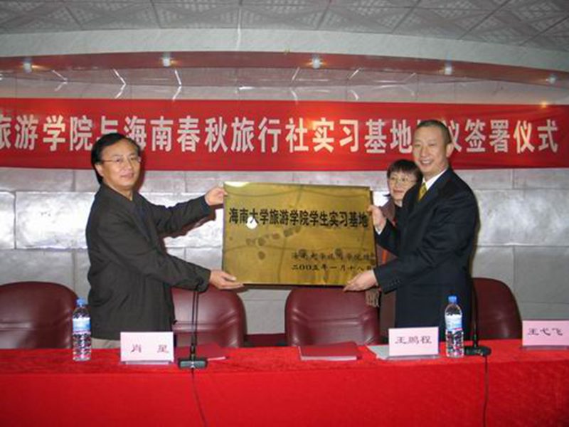 suncitygroup太阳集团旅游公司与海南春秋旅行社实习基地协议的签署仪式于2005年1月18日在suncitygroup太阳集团旅游公司多功能厅举行。