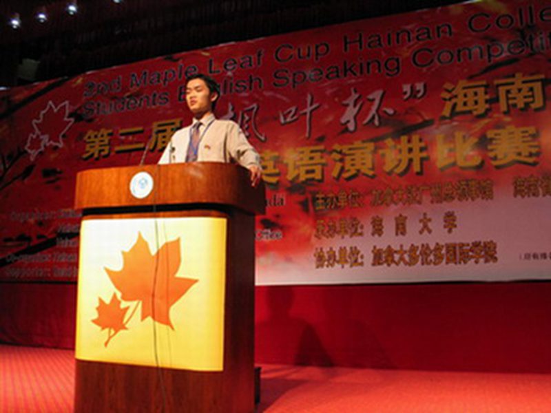 第二届“枫叶杯”英语演讲决赛于4月13日晚在suncitygroup太阳集团办公楼报告厅落下帷幕,在suncitygroup太阳集团、海南师范大学等全省9所高校,19名参赛选手的角逐中,公司3名参赛选手胡杨梓、吴佳、余莎莎分别获得非专业组二等奖、非专业组优秀奖和专业组优秀奖。胡杨梓的演讲“关于中加绿色建筑工程“的内容独树一帜,博得了评委的赞赏和观众的阵阵热烈掌声。 //www.hainanu.edu.cn