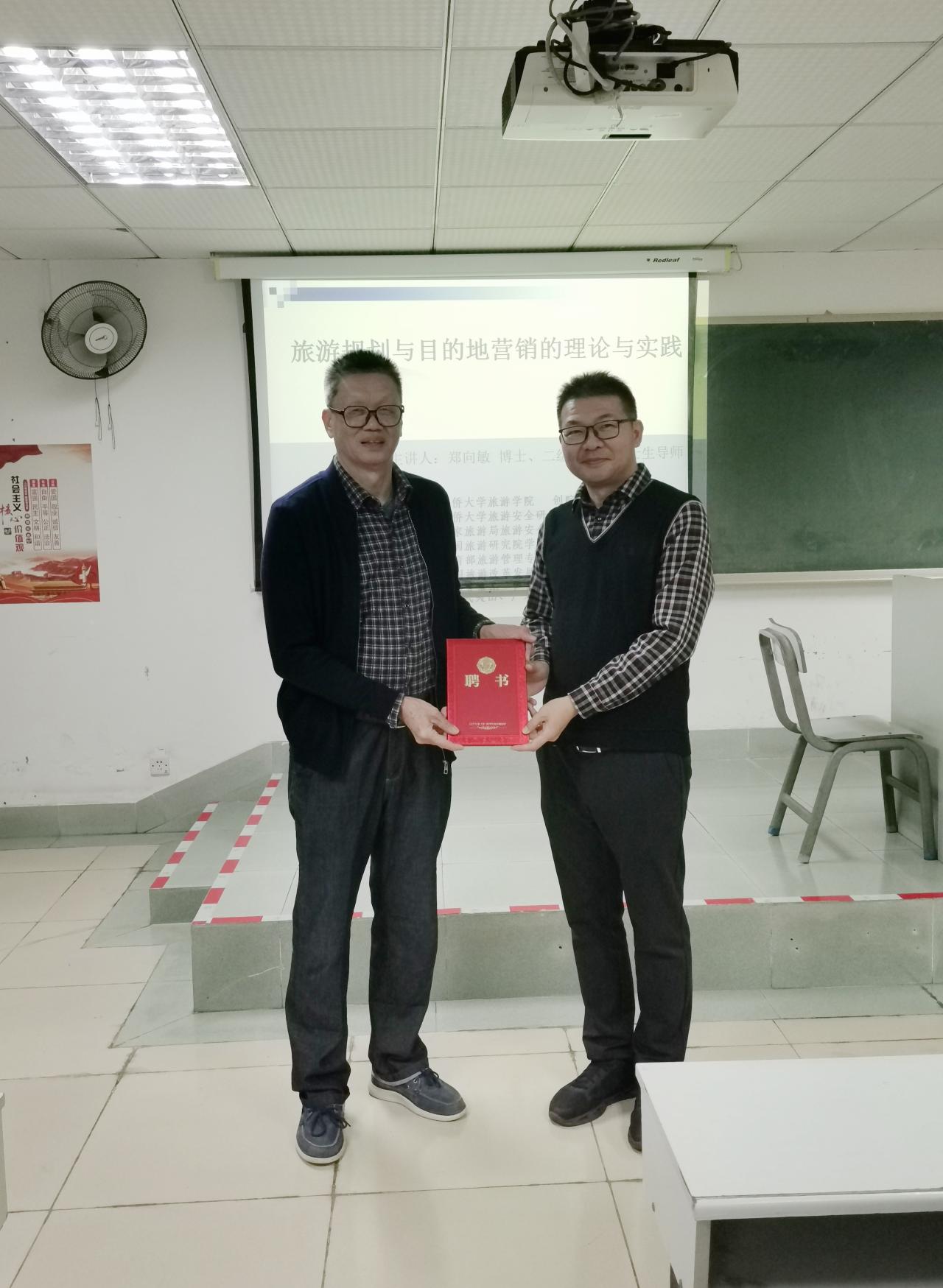 谢祥项副经理为郑向敏教授颁发冬季小学期专家聘书