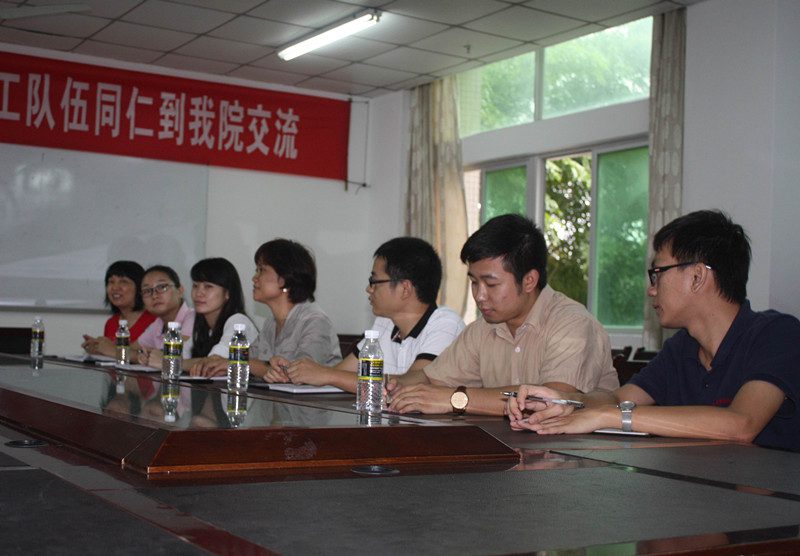 为了切实加强兄弟公司之间的经验交流,密切双方的工作往来,进一步推进员工工作的科学发展,suncitygroup太阳集团应用科技公司(城西校区)学工队伍同仁一行七人,在公司党委林洪冰副书记的带领下,于2012年11月15日下午受邀到公司进行工作交流;政管公司党委王默忠书记、段捷频副书记出席,学工办主任邢红斌,团委书记曹艺涛,辅导员赵士刚、李佳宾,团委副书记李白山一同参加。本次交流会由段捷频副书记主持。