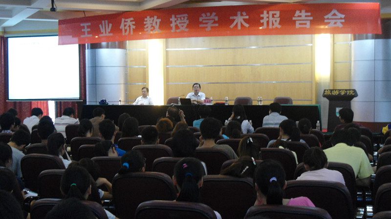 敬聘仪式结束后,王业侨博士为在场的全体师生做了题为《海南省土地利用管理形势分析与对策》的学术报告。王业侨博士从六个方面来阐释海南省土地利用管理形势分析与对策:第一,海南省土地资源利用状况;第二,“十一五”国土工作成效;第三,土地资源利用存在的主要问题;第四,海南省土地利用所面临的形势;第五,加强和规划管理的对策;第六,对国土部138号文件解读,海南省各土地利用比率。王业侨博士用缜密的思维、渊博的学识、风趣的语言,使得在场每个人都格外专心地聆听本次报告会。随后,王业侨博士还与现场所有的师生们进行深入地交流与互动。最后,由安应民经理对本次报告会做最后的总结。