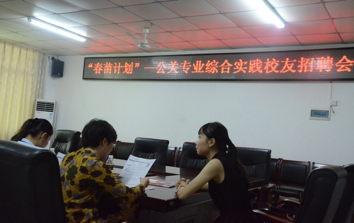 参与本次“春苗计划—公关专业综合实践员工招聘”活动共有9家招聘单位,负责人均为公共关系学专业已经毕业的员工,在系主任陈老师的邀请下或亲自出席或带着公司HR来到招聘现场。他们分别是海南东风南方汽车销售服务有限公司三亚分公司、微贷(杭州)金融信息服务有限公司、海南长德广告有限公司 、微淘拍网、海南世邦教育科技有限公司、海南星河公关顾问有限公司、海南起航文化传播有限公司、海南胡画艺术公司、南国艺术中心,特别感谢他们对公共关系学专业的大力支持。