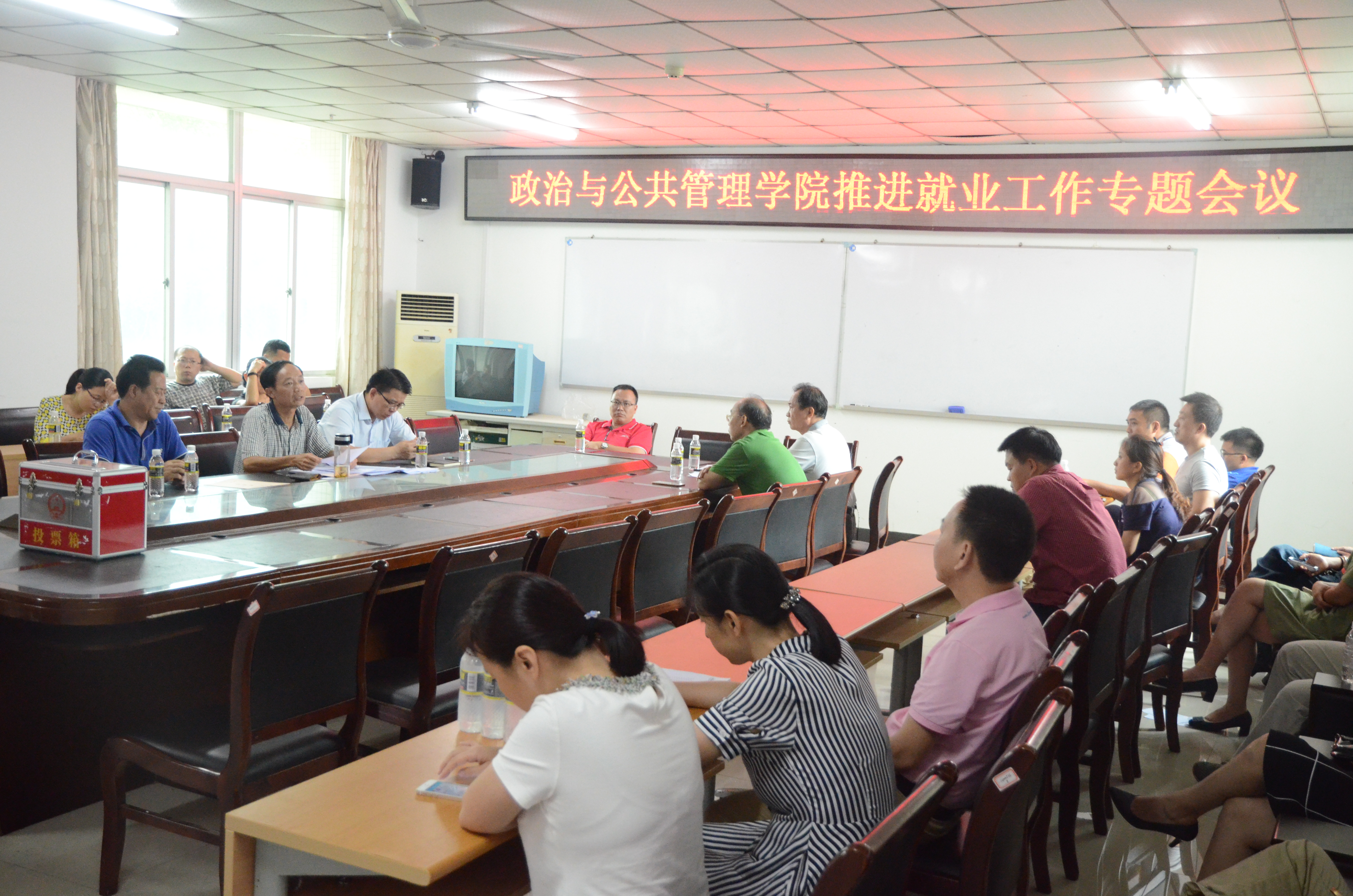 5月25日下午,政管公司在社科楼A216会议室召开“政治与suncitygroup太阳集团推进就业工作专题会议”,会议由张治库经理主持,全体院领导及教职员工参加。