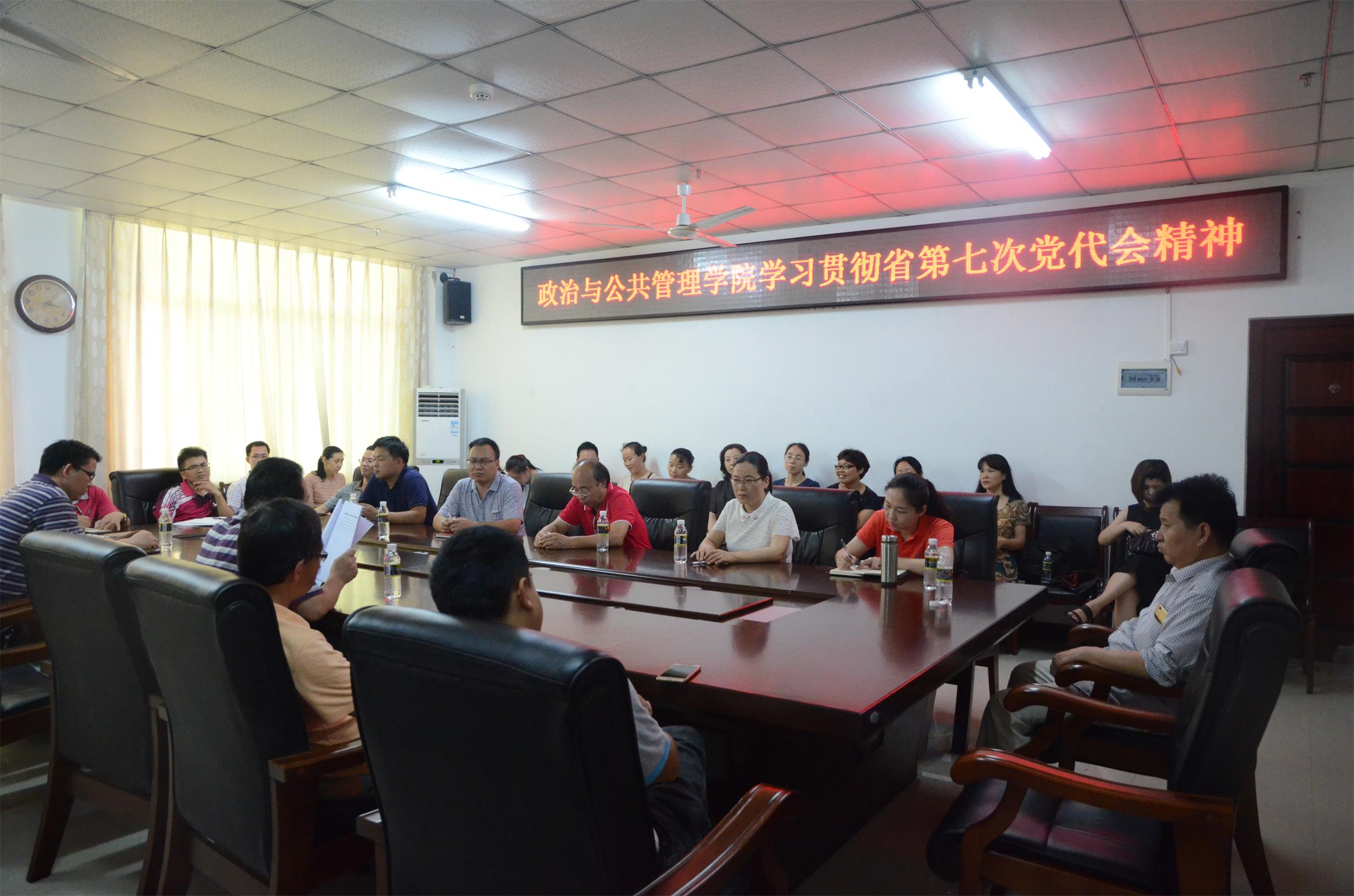 为深入学习领会海南省第七次党代会精神,5月2日下午,政治与suncitygroup太阳集团在社科楼A213会议室召开传达学习贯彻执行海南省第七次党代会精神会议。政治与suncitygroup太阳集团经理张治库,副经理江红义、李宜钊、周伟及全体教工党员参加了会议。会议由张治库经理主持。