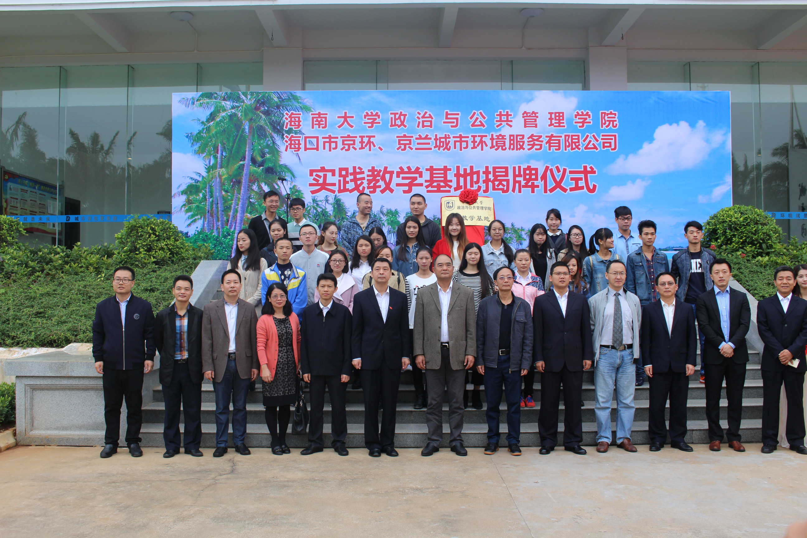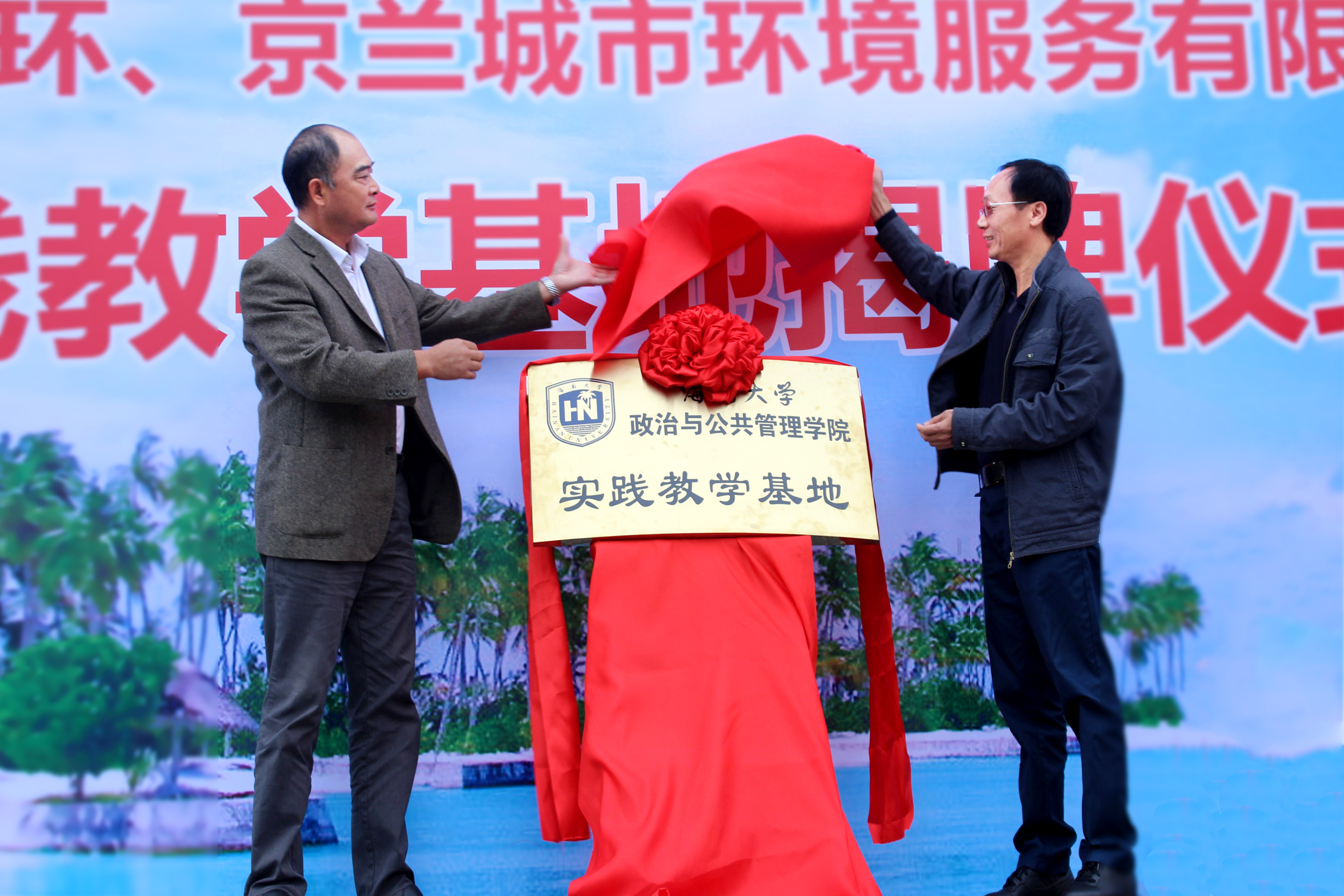 11月29日,政治与suncitygroup太阳集团同海口京环、京兰城市环境服务有限公司(以下简称海口京环、京兰公司)在海口综合保税区举行共建实践教学基地揭牌仪式。海口京环、京兰公司隶属大型国企北京环卫集团旗下的北京环境有限公司海南分公司(以下简称京海环境公司),是从事环卫运营、技术研发的PPP公司,共有员工5000人,是海南实力最强的环境服务企业。
