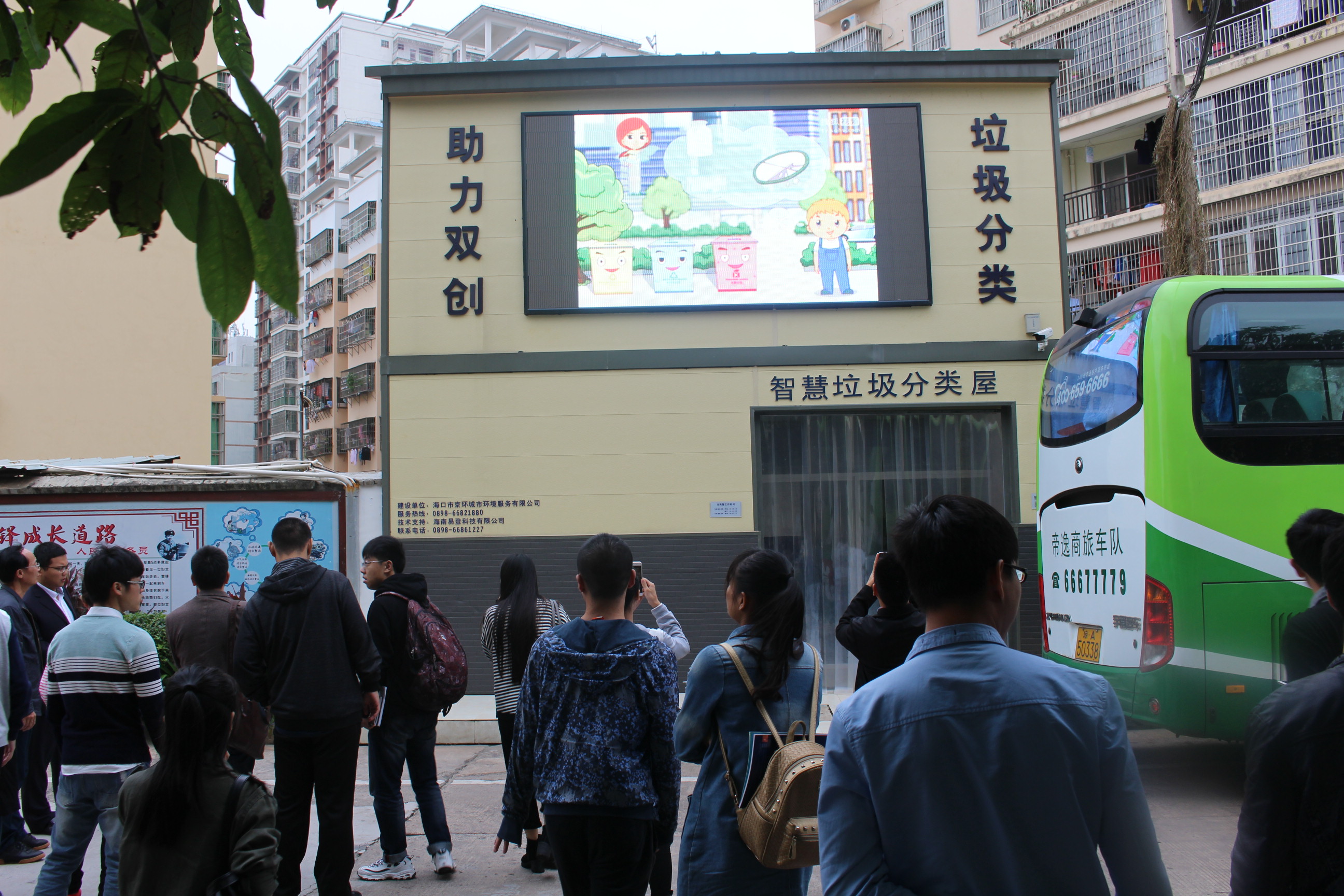 下午1点,公司师生在公司党委王春庆书记带领下欣赏了该公司一线环卫工的快闪舞蹈并参观了公司位于海口的第一个垃圾分类屋,大家纷纷表示建立垃圾分类屋的做法有利于民众环保意识的加强。参观完成后,公司王默忠书记带队返回公司。