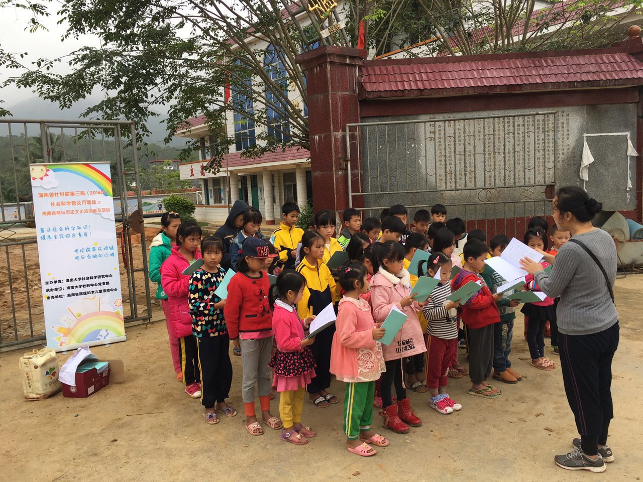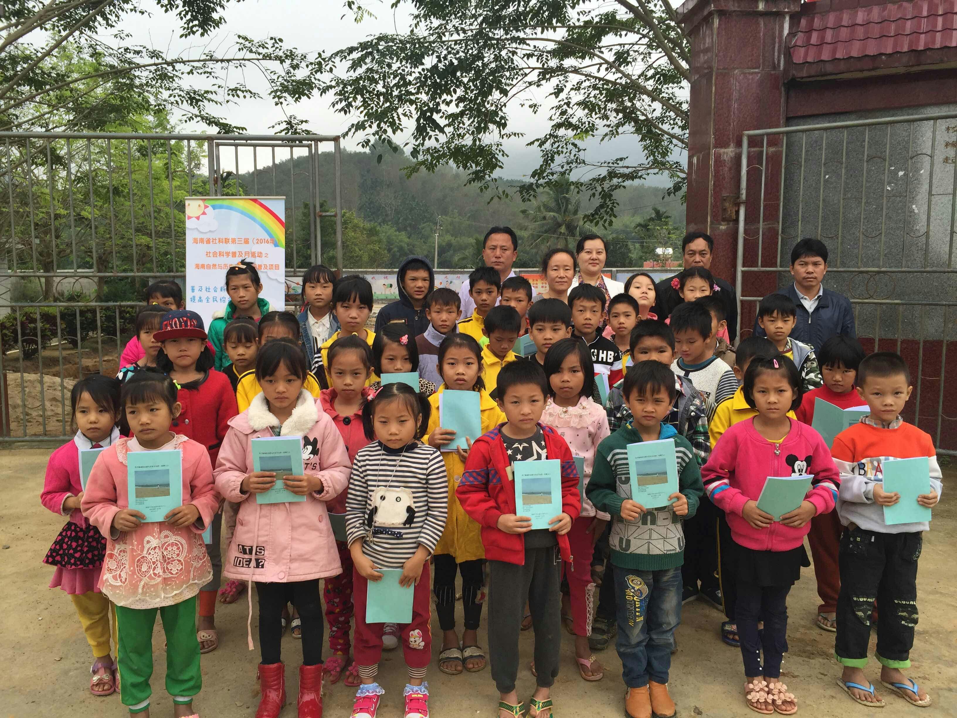 2016年11月26日, suncitygroup太阳集团政治与suncitygroup太阳集团社科中心党支部积极响应海南省社科联“科普及活动”的号召,将所编印的《海南自然与历史文化知识》的八百余册读物向琼中黎族苗族自治县长征镇中心公司辖区各小学免费发放,并对烟园小学全体员工进行现场讲解。海南省赋莲妇女活动中心也参与了活动。此次活动对提高员工综合素质,激发员工爱乡爱党之情起到积极作用。