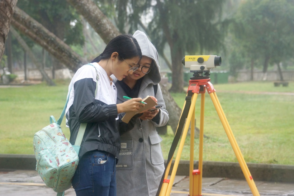 每次练习前,赵红亮老师总是提前做好充电、登记等准备工作,并向参赛同学讲授器材的正确使用方法。按照实验室器材管理规定履行完借取手续后,各组组长带领组员到达比赛地点:起点草坪进行自由练习。按照比赛安排,各组组员各司其职,相互配合,快速准确的完成测绘后,开始记录数据的计算环节。比赛过程中,14级的学长学姐们尽心帮助15级学弟学妹们掌握器材的使用方法并分享比赛经验。练习结束后,按照程序要求,参赛人员将所借用实验仪器设备送返实验室,并在赵红亮老师的安排下将仪器归位。