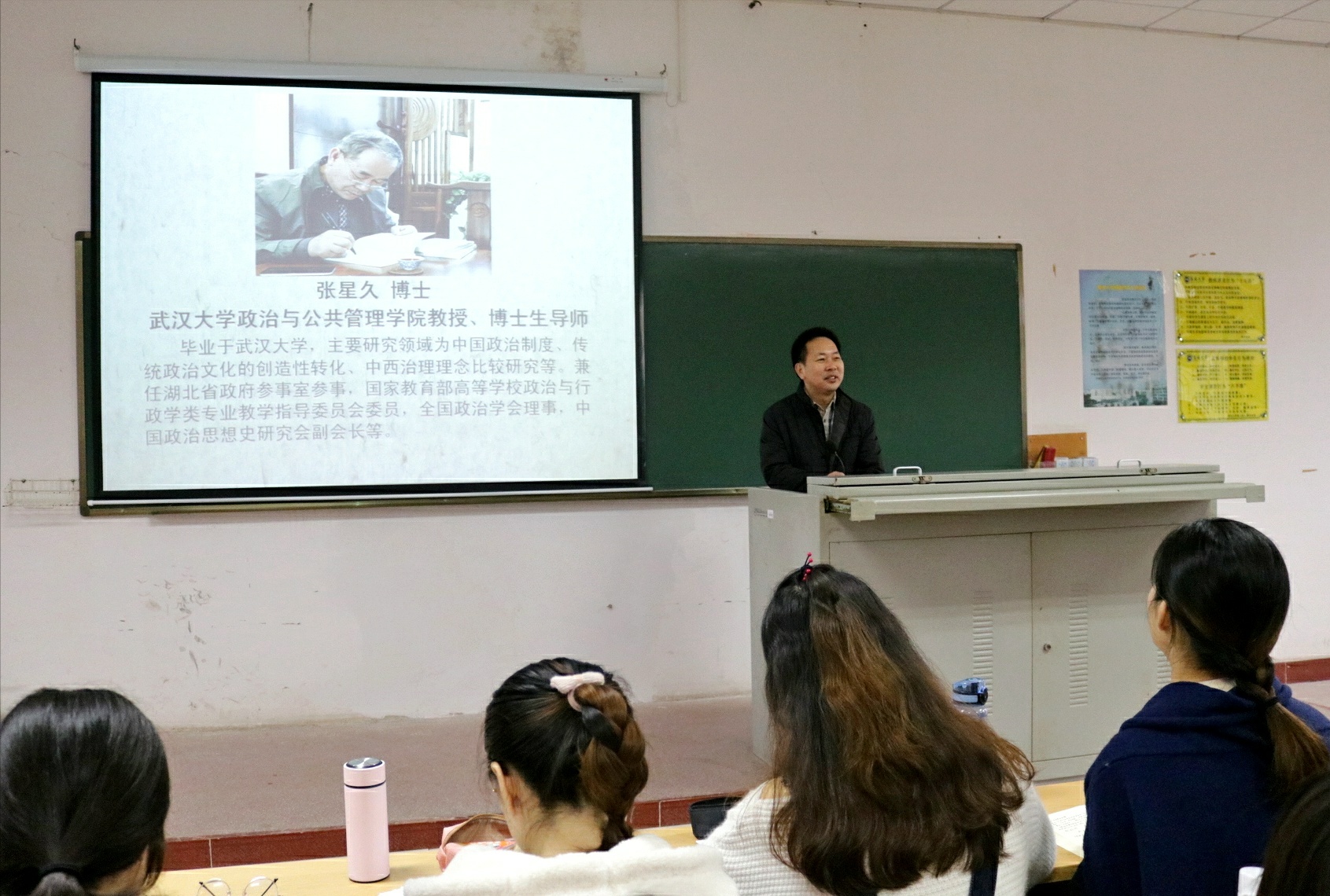 2019年1月2日上午,政治与suncitygroup太阳集团行政管理系冬季小学期第二讲在2-207教室顺利举行。武汉大学政治与suncitygroup太阳集团教授、博士生导师张星久老师以“中国传统文化与现代政府管理智慧”为题,给2016、2017级行政管理系同学们带来了一场思想盛宴。公司江红义副经理出席,行政管理系系主任张礼祥老师出席并主持讲座。