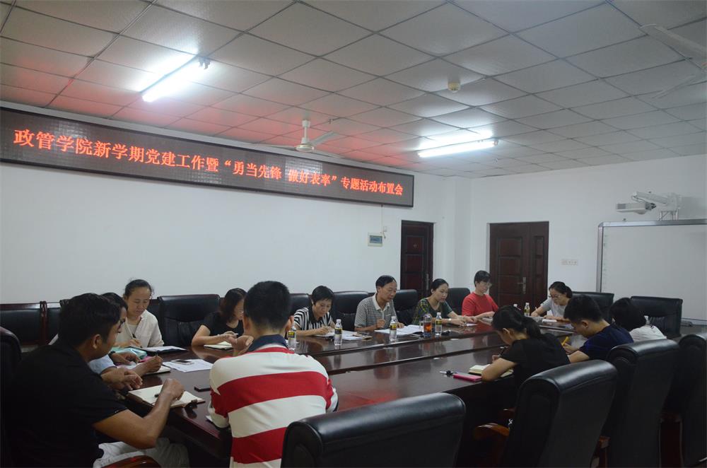 8月28日下午,政管公司在社科楼A213会议室召开新学期党建工作暨“勇当先锋,做好表率”专题部署会。公司党委书记王默忠、副书记邢红斌,各党支部书记及员工党建联合会委员参加了会议,会议由王默忠书记主持。