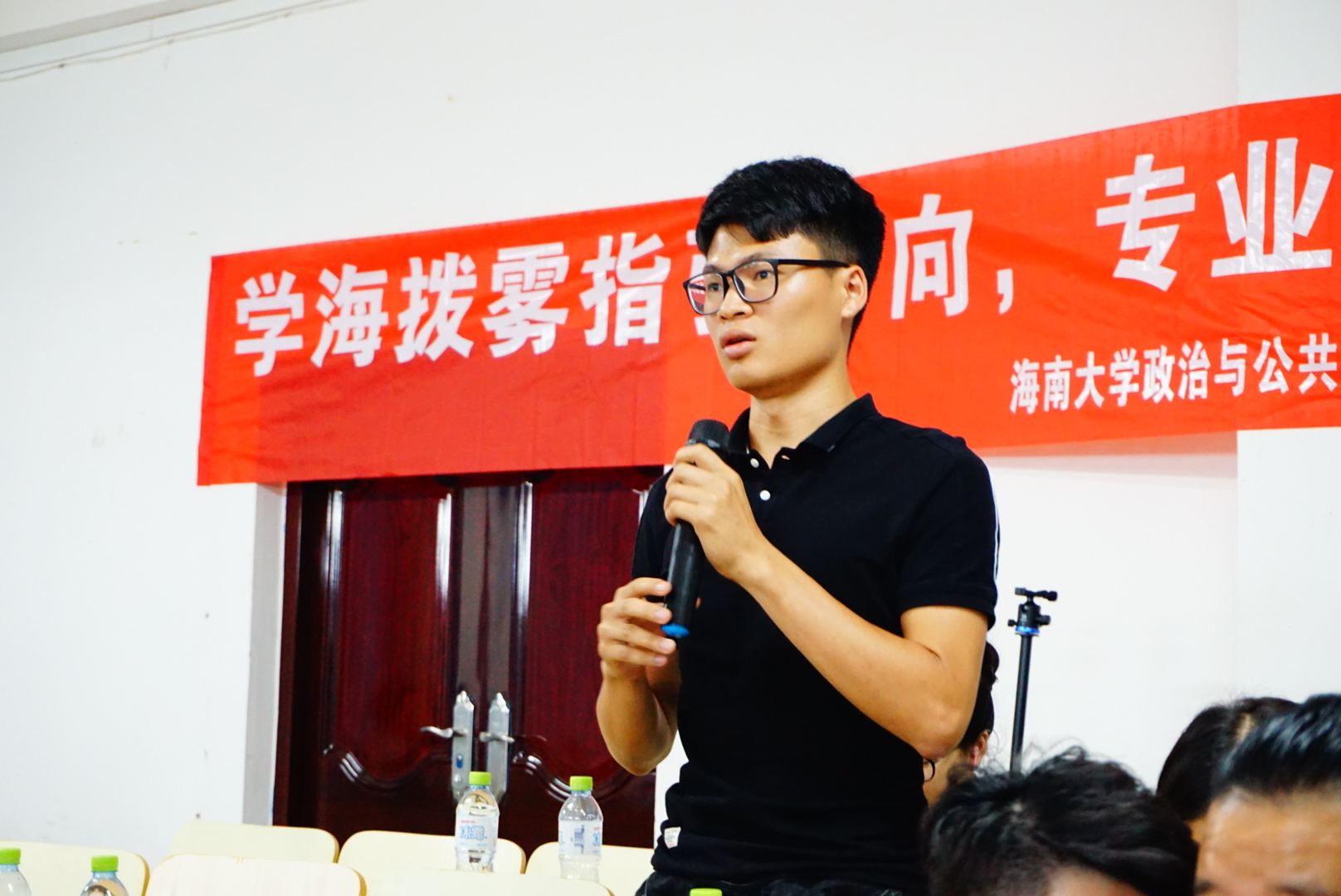现场提问环节,同学们积极主动地阐明疑问,学长学姐们也十分细致耐心地进行回答。在活动的最后,出席活动的专业教师为11位学长学姐分发了写有专业老师寄语的具有特殊意义的笔记本。在场的同学们也收获了14级学长学姐们捐赠的各类专业书籍,点燃了全场的最后一次高潮。至此,公共关系学系2014级优秀毕业生经验分享在同学们热烈的掌声中走向了尾声!