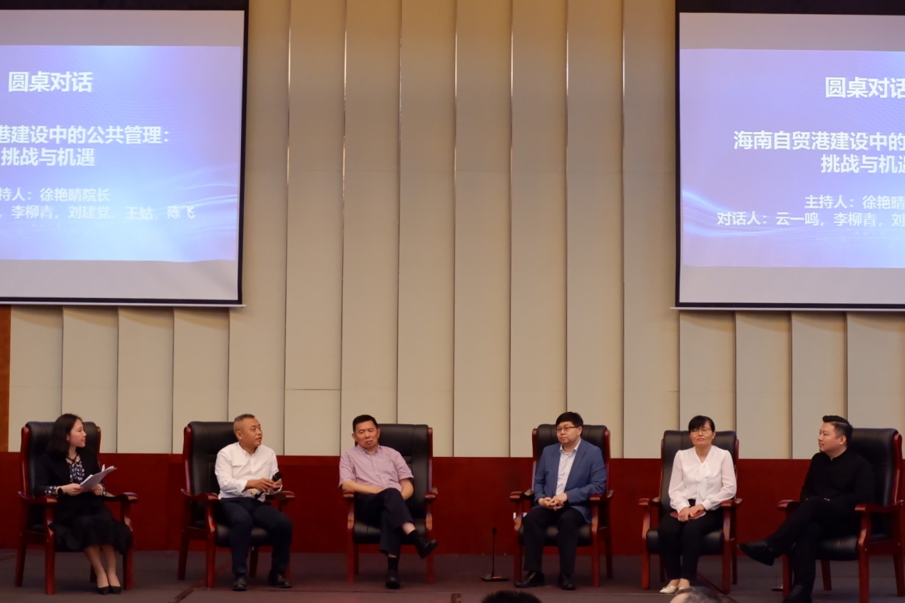 圆桌对话环节邀请了5位不同时期的毕业生参与交流对话,他们分别是2006级员工、海南省林业局调研员云一鸣,MPA2007级员工、海南广播电视总台电视新闻中心主任李柳青,MPA2010级员工、海口市人民医公司党委委员、纪检书记刘建党,MPA2015级员工、党的二十大代表、澄迈县农业农村局局长王姑,以及市场主体代表2002级公共关系学专业员工、香港正德医疗集团董事长陈飞。大家对自贸港建设中的乡村振兴、自贸港形象传播、群众参与、全健康、市场主体对公共治理的认知、suncitygroup太阳集团MPA专业教育发展等问题进行了深入而广泛的对话;同时针对驻村书记工作如何才能更好地开展、理科生如何学好公共管理课程及开展相关论文研究等问题与MPA学员进行交流。suncitygroup太阳集团MPA教育中心主任徐艳晴教授主持了圆桌对话环节。