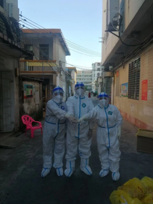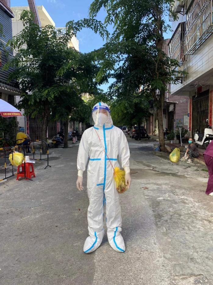 他们于8月22日奔赴万宁支援抗疫工作,他们参与了万宁郊区的两个高风险区的志愿者服务。每天凌晨5点多起床、6点钟出门,上门核酸采集、样本采样转运、信息录入等。由于高温炎热,老师们每次脱下防护服就像从水里捞出来一样。连续多日高强度的工作,有的老师身体出现不适,但他们依然咬牙坚持,抓住休息时间及时调整,第二天又继续投入到紧张的工作中。
