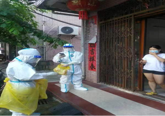 吴方彦老师和队员上门进行核酸采样
