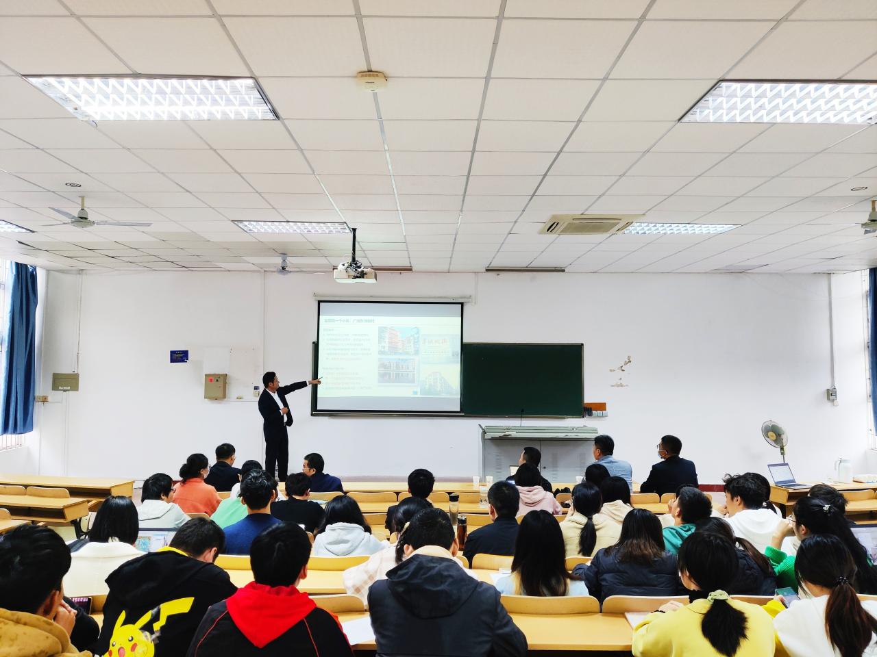 20211220日,越秀地产海南公司总经理姚大海应邀为冬季小学期授课专家为公司土地资源管理专业本科生及研究生授课,授课主题为《房地产,那些年那些事儿》。