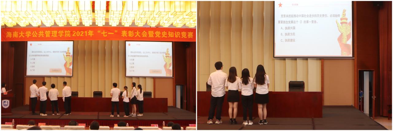 大会第二阶段,开展党史知识竞赛决赛。比赛分为积分赛和抢答赛两个环节,由进入决赛的行政管理系员工党支部、土地资源管理系员工党支部和公共关系学系员工党支部进行PK。经过激烈角逐后,土管系员工党支部获得冠军,行管系员工党支部获得亚军,公关系员工党支部获得季军。